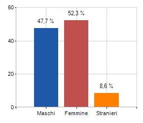 e relativa densità abitativa, abitanti per sesso e numero di famiglie residenti, età media e incidenza degli stranieri