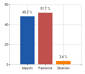 e relativa densità abitativa, abitanti per sesso e numero di famiglie residenti, età media e incidenza degli stranieri