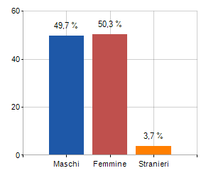 e relativa densità abitativa, abitanti per sesso e numero di famiglie residenti, età media e incidenza degli stranieri