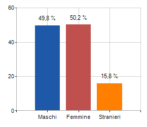 e relativa densità abitativa, abitanti per sesso e numero di famiglie residenti, età media e incidenza degli stranieri