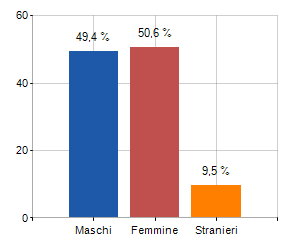 e relativa densità abitativa, abitanti per sesso e numero di famiglie residenti, età media e incidenza degli stranieri